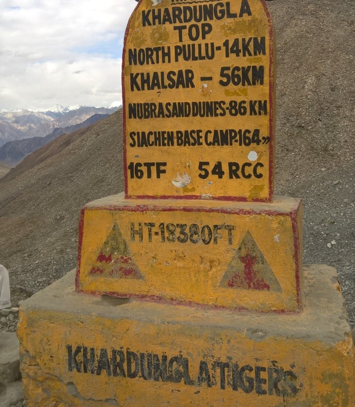 The photograph was clicked by me, when we were about to climb the peak alongside the above marker. I must admit, probably like anyone else in my place, it made me stop in my tracks to pause and click a few pictures of this noteworthy roadside concrete signage reading, ‘YOU ARE ON THE HIGHEST MOTORABLE ROAD’! If I may add, ‘IN THE WORLD’! This would emphasize and underline my thought process.